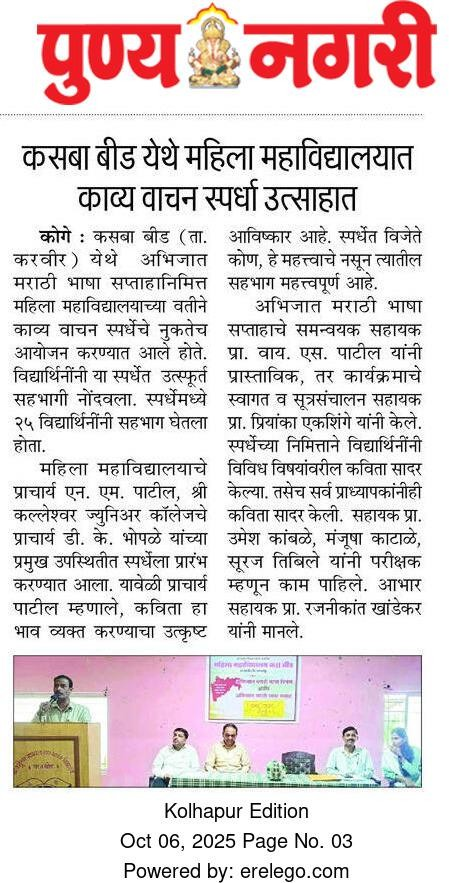 प्रथम वर्ष विद्यार्थिनींचा स्वागत समारंभ अहवाल |